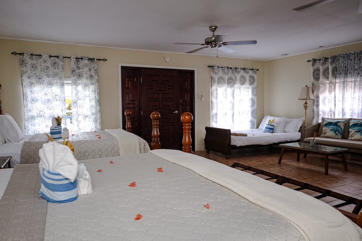 Bedding: 1 King Bed, 1 Queen Bed, 1 Double Futon